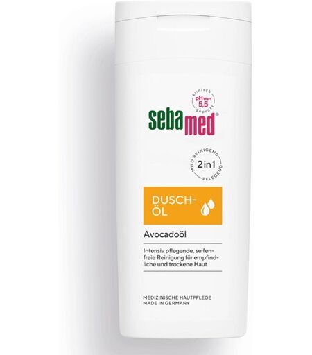 Anwendungsgebiet von Sebamed DuschölSebamed Duschöl - das Duschöl für Damen und Herren, mit Avocadoöl, intensiv pflegende seifenfreie Reinigung für empfindliche und trockene Haut REINIGT UND PFLEGT: sebamed Duschöl ist eine leicht schäumende Emulsion. Ihr hochwertiger Pflege- und Schutzkomplex mit natürlichem Lecithin und Avocadoöl führt der Haut beim Duschen intensiv pflegende Lipide zu, unterstützt den Schutz vor Fett- und Feuchtigkeitsverlust und macht auch die sehr trockene Haut fühlbar zarter und geschmeidiger.PH 5,5 FÜR GESUNDE HAUT: Der pH-Wert 5,5 von sebamed stärkt die Funktion des natürlichen Hautschutzmantels auch gegen schädliche Umwelteinflüsse und trägt zur Gesunderhaltung der Haut bei.QUALITÄT MADE IN GERMANY: Unsere Produkte werden in Deutschland entwickelt, getestet und hergestellt. Die Qualität ist durch ausgewählte Rohstoffe und kontrollierte Fertigungsprozesse garantiert. Sebamed Produkte sind in über 400 Studien dermatologisch-klinisch getestet.DERMATOLOGISCH-KLINISCH BESTÄTIGT: Sebamed Produkte helfen, den natürlichen Hautschutzmantel zu stabilisieren und die Haut widerstandsfähiger gegen Umweltreize zu machen. Die Verträglichkeit und Pflegewirkung sind dermatologischklinisch geprüft und bestätigt. Dadurch trägt diese Pflegeserie nachweislich dazu bei, das Risiko für Hautreaktionen spürbar zu vermindern.UNSER UMWELTVERSPRECHEN: 0 % Mikroplastik 0 % Silikone, 0% PEG, Vegan.Wirkungsweise von Sebamed DuschölDer effektive Pflegekomplex mit Avocadoöl und natürlichem Lecithin pflegt und stellt das Gleichgewicht des Hydrolipidsystems der Haut wieder her.Wirkstoffe / Inhaltsstoffe / ZutatenInhaltsstoffe von Sebamed Duschöl: