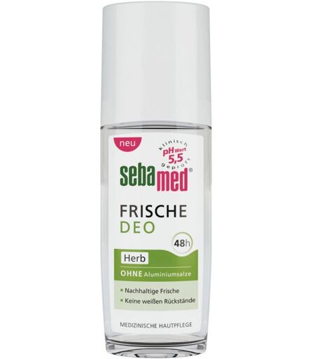 Anwendungsgebiet von Sebamed Frische Deospray herbEffektive Wirkung gegen Körpergeruch und Sorge um langanhaltende Frische Wirkungsweise von Sebamed Frische Deospray herbSebamed Frische Deospray herb ist ein Markenprodukt aus unserer Versand-Apotheke. Sebamed Frische Deospray herb wirkt zuverlässig gegen Körpergeruch und ist dabei sehr hautverträglich. Da in Sebamed Frische Deospray herb Aluminiumverbindungen und Konservierungsstoffe verzichtet wird, hemmt der pH-Wert 5,5 von Sebamed Frische Deospray herb die Vermehrung von Geruchsbakterien ohne Beeinträchtigung der natürlichen Funktion der Schweißdrüsen. Sebamed Frische Deospray herb enthält besonders hautverträglichen Duftstoffen und ist für jeden Hauttyp geeignet. Wirkstoffe / Inhaltsstoffe / ZutatenInhaltsstoffe von Sebamed Frische Deospray herb (nach INCI): Alcohol, Aqua, Triethyl Citrate, Parfum, Sodium Citrate GegenanzeigenBei bekannter Überempfindlichkeit gegenüber einem der oben genannten Inhaltsstoffe sollte das Produkt nicht verwendet werden. DosierungAnwendungsempfehlung von Sebamed Frische Deospray herb: Morgens Sebamed Frische Deospray herb auf die gereinigte Haut auftragen. HinweiseSebamed Frische Deospray herb ist frei von Aluminium und Konservierungsmittel. Sebamed Frische Deospray herb können in Ihrer Versandapotheke www.juvalis.de erworben werden. ...