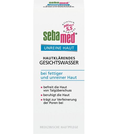 Anwendungsgebiet von Sebamed Unreine Haut GesichtswasserSebamed Unreine Haut Gesichtswasser befreit die Haut gründlich und schonend von Talgüberschuss, Hautfett und Schmutzresten und beugt wirksam neuen Pickeln vor.Wirkungsweise von Sebamed Unreine Haut GesichtswasserPanthenol fördert die Regeneration der Haut. Hamamelis beruhigt die Haut und trägt zur Verfeinerung der Poren bei. Seidenproteine und Allantoin führen der Haut Feuchtigkeit zu. Der hauteigene pH-Wert 5,5 stabilisiert den natürlichen Säureschutzmantel der Haut, schützt biologisch gegen Bakterien und trägt so zur Vorbeugung gegen Pickel und Mitesser bei.Wirkstoffe / Inhaltsstoffe / ZutatenSebamed Unreine Haut Gesichtswasser enthält:Aqua, Alcohol, Panthenol, Polysorbate 20, Glycerin, Propylene Glycol, Sodium Lactate, Allantoin, Hamamelis virginiana bark / leaf / twig extract, Hydrolyzed Silk, Cucumis sativus fruit extract, Hydroxypropyl Oxidized Starch PG-Trimonium Chloride, Urea, Caramel, Parfum, Sodium Benzoate, Potassium Sorbate, Levulinic Acid, p-Anisic Acid, CI 4209. GegenanzeigenBei bekannter Überempfindlichkeit gegenüber einem der oben genannten Inhaltsstoffe sollte dieses Produkt nicht angewendet werden.DosierungAnwendungsempfehlung von Sebamed Unreine Haut Gesichtswasser:Zur Reinigung des Gesicht das Gesichtswasser mit einem Wattepad gleichmäßig verteilen.Sebamed Unreine Haut Gesichtswasser können in Ihrer Versandapotheke www.apolux.de erworben werden. ...