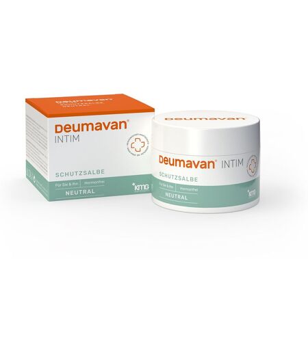 MEDIZINISCHER HAUTSCHUTZ FÜR DEN ÄUSSEREN INTIM- UND ANALBEREICH DEUMAVAN Schutzsalbe ist ein Medizinprodukt und wurde vom Gynäkologen Professor Dr. Eiko E. Petersen entwickelt. Sie ist bei vielen Beschwerden der empfindsamen Haut im äußeren Intim- und Analbereich anwendbar. Sie lindert Brennen, Juckreiz und Wundsein bei trockener und geschädigter Intimhaut, schützt die Haut vor Läsionen und Reizungen bei mechanischer Belastung und unterstützt die Hautbarriere im Schutz vor äußeren Einflüssen. Als Bestandteil der täglichen Intim- und Analhygiene beugt DEUMAVAN Schutzsalbe Intimbeschwerden vor. DEUMAVAN Schutzsalbe eignet sich zur kurzzeitigen sowie dauerhaften täglichen Anwendung – nach ärztlicher Rücksprache auch begleitend zur medikamentösen Therapie. Für Sie & Ihn Lindert Brennen, Juckreiz und Wundsein bei trockener und geschädigter Intimhaut Hormonfrei, ohne Alkohol, ohne Emulgatoren Unterstützt die natürliche Hautbarriere Brennt nicht beim Auftragen Medizinprodukt: Klinisch geprüfte Wirksamkeit Pharmazeutische Qualität aus Deutschland URSACHEN FÜR TROCKENE, STRAPAZIERTE INTIMHAUT: Veränderungen des Hormonhaushalts (z. B. in den Wechseljahren, während u. nach Schwangerschaft) Übermäßiges Waschen Fehlende oder falsche Intim- / Anal-Pflege Strahlenbehandlung oder Diabetes mellitus Mechanische Beanspruchung, z. B. durch Sport Erkrankungen wie Lichen sclerosus, Vulvodynie, Schuppenflechte, Neurodermitis LINDERT BRENNEN, JUCKREIZ UND WUNDSEIN: Bei trockener, rissiger Intimhaut, insbesondere in und nach den Wechseljahren oder bei Diabetes mellitus Therapiebegleitend bei Lichen sclerosus und Vulvodynie Im Analbereich, vor allem bei Durchfall, Rhagaden und Hämorrhoiden Bei chronisch-entzündlichen Hauterkrankungen wie Psoriasis (Schuppenflechte) oder Neurodermitis UNTERSTÜTZT DIE NATÜRLICHE HAUTBARRIERE IM SCHUTZ VOR: Urin und Stuhl, insbesondere bei Harn- oder Stuhlinkontinenz Mechanischer Beanspruchung durch Geschlechtsverkehr, Tragen von Inkontinenzmaterialien oder beim Sport (z. B. Radfahren) Erregern, die Infektionen der Harnwege und/oder des Intimbereichs hervorrufen können KLINISCH GEPRÜFTE WIRKSAMKEIT: Die fettreiche DEUMAVAN Schutzsalbe ist bei vielen trockenheitsbedingten Beschwerden der empfindsamen Haut im äußeren Intim- und Analbereich anwendbar Auch eine langfristige und therapiebegleitende Anwendung ist möglich (nach ärztlicher Rücksprache) DEUMAVAN ist die meistempfohlene Schutzsalbe für den Intimbereich bei niedergelassenen Gynäkologen, Dermatologen und Urologen in Deutschland. (IQVIA Diagnosis Monitor Verordnungen MAT 09/2022) SEHR GUTE VERTRÄGLICHKEIT DURCH HOCHREINE REZEPTUR: Die wasserfreie DEUMAVAN Schutzsalbe enthält ausschließlich Fette und Öle in hochreiner pharmazeutischer Qualität, die sich seit mehr als 100 Jahren in der Dermatologie bewährt haben. OHNE EMULGATOREN OHNE KONSERVIERUNGSMITTEL (Z. B. PARABENE) OHNE ALKOHOL OHNE FARBSTOFFE OHNE HORMONE DEUMAVAN Schutzsalbe Neutral verzichtet zusätzlich auch gänzlich auf... ...