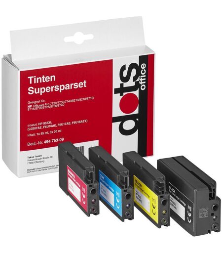 dots Druckerpatronen kompatibel zu HP 953XL (3HZ52AE), 4er-Set schwarz, cyan, magenta, gelb 1747,4005-DOTS
