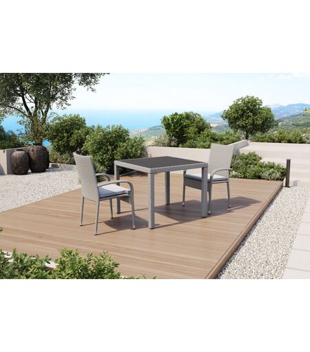 Ploss Ploß Vigo Garten-Essgruppe, stahlgrau-meliert, Alu/Polyrattan, Tisch 90 x 90 cm, 2 Stühle, Polster inklusive, pulverbeschichtet