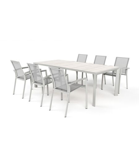 SIENA GARDEN Silva Garten-Essgruppe, silber/washed grey/weiß-grau, Alu/Keramik/Ranotex®, 220 x 100 cm, pulverbeschichtet, stapelbar C31063