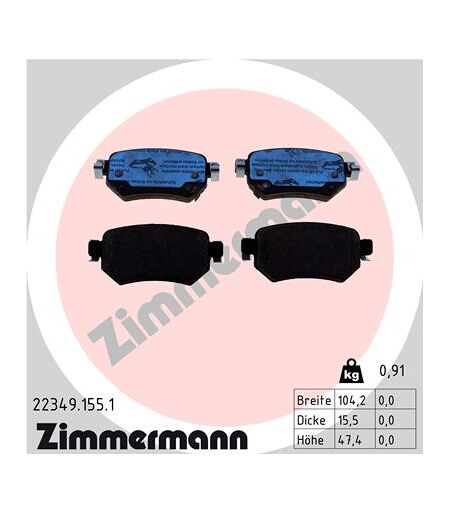 Zimmermann Bremsbelagsatz, Scheibenbremse Hinten Rechts Links Foto Entspricht Lieferumfang Für Mazda Gmy0-26-43zb Gmy0-26-43zc Gmy0-26-43z 22349.155.1