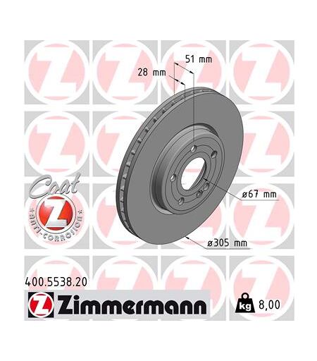 Zimmermann Bremsscheibe Vorne Rechts Links Innenbelüftet 305mm Für Mercedes-Benz A2474210412 2474210412 400.5538.20