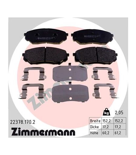 ZIMMERMANN Bremsbelagsatz, Scheibenbremse Bremssystem: MANDO Ergänzungsartikel/Ergänzende Info: mit Gleitblech Höhe 1: 60 mm Verschleißwarnkontakt: mit akustischer Verschleißwarnung Dicke/Stärke: 17 mm test_mark_190: Prüfzeichen: ECE R90 APPROVED Höhe 2: 61 mm Ergänzungsartikel/Ergänzende Info: Foto entspricht Lieferumfang Breite: 152 mm Anzahl Verschleißanzeiger [pro Achse]: 2: pro Achse Menge 1 entspricht einem Satz (4 Bremsbeläge für links UND rechts) , u.a. für KIA Sorento III (UM), 2199 cm³, 200 PS (147 kW), ab 1/2015, KBA-Nr: 8253AFKKIA Sorento III (UM), 2199 cm³, 200 PS (147 kW), ab 1/2015, KBA-Nr: 8253AFLKIA Sorento III (UM), 2359 cm³, 188 PS (138 kW), ab 1/2015, KBA-Nr: 8253AFIKIA Sorento III (UM), 2359 cm³, 188 PS (138 kW), ab 1/2015, KBA-Nr: 8253AFHKIA Sorento III (UM), 3342 cm³, 271 PS (199 kW), ab 4/2015, KBA-Nr: 8253AFTKIA Sorento III (UM), 2359 cm³, 175 PS (129 kW), ab 1/2015KIA Sorento III (UM), 2199 cm³, 197 PS (145 kW), ab 11/2016KIA Sorento III (UM), 2199 cm³, 193 PS (142 kW), ab 11/2016KIA Sorento III (UM), 3342 cm³, 271 PS (199 kW), ab 4/2015, KBA-Nr: 8253AFUKIA Sorento III (UM), 1995 cm³, 185 PS (136 kW), ab 7/2015, KBA-Nr: 8253AFJKIA Sorento III (UM), 2199 cm³, 202 PS (149 kW), ab 1/2015Hyundai Santa Fé IV (TM, TMA), 1995 cm³, 186 PS (137 kW), ab 2/2018Hyundai Santa Fé IV (TM, TMA), 1995 cm³, 186 PS (137 kW), ab 2/2018, KBA-Nr: 8252AIIHyundai Santa Fé IV (TM, TMA), 2199 cm³, 200 PS (147 kW), ab 7/2018, KBA-Nr: 8252AIJHyundai Santa Fé IV (TM, TMA), 2199 cm³, 200 PS (147 kW), ab 7/2018, KBA-Nr: 8252AIKHyundai Santa Fé IV (TM, TMA), 2359 cm³, 173 PS (127 kW), ab 7/2018Hyundai Santa Fé IV (TM, TMA), 2359 cm³, 185 PS (136 kW), ab 7/2018, KBA-Nr: 8252AIFHyundai Santa Fé IV (TM, TMA), 1995 cm³, 150 PS (110 kW), ab 7/2018, KBA-Nr: 8252AIGHyundai Santa Fé IV (TM, TMA), 1995 cm³, 150 PS (110 kW), ab 7/2018, KBA-Nr: 8252AIHHyundai Santa Fé IV (TM, TMA), 2359 cm³, 188 PS (138 kW), ab 7/2018KIA Sorento III (UM), 3470 cm³, 249 PS (183 kW), ab 12/2018Hyundai Santa Fé IV (TM, TMA), 3470 cm³, 249 PS (183 kW), ab 7/2019Hyundai Santa Fé IV (TM), 2199 cm³, 200 PS (147 kW), ab 7/2018Hyundai Santa Fé IV (TM, TMA), 1598 cm³, 230 PS (169 kW), ab 8/2020Hyundai Santa Fé IV (TM, TMA), 2151 cm³, 201 PS (148 kW), ab 11/2020 , OE-Nummer:TEXTAR:2237801HERTH+BUSS JAKOPARTS:J3600317TRW:GDB2195BREMBO:P 30 086HELLA PAGID:8DB 355 024-901ICER:182244ATE:13.0460-5681.2ATE:13.0470-5681.2RAICAM:RA.1193.0BOSCH:0 986 494 827FERODO:FDB4983TRW:GDB2359JURID:573782J ...