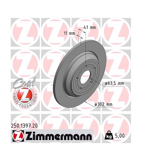 Zimmermann Bremsscheibe Hinten Rechts Links Voll 302mm Für Ford Jx61-2a315-Bea Lx61-2a315-Bnb G1fz-2c026-A 250.1397.20
