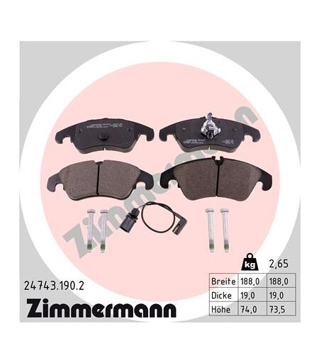 Zimmermann Bremsbelagsatz, Scheibenbremse Vorne Rechts Links Foto Entspricht Lieferumfang Für Audi (Faw) Vag 8k0698151 4g0698151d 8k0698151r 24743.190