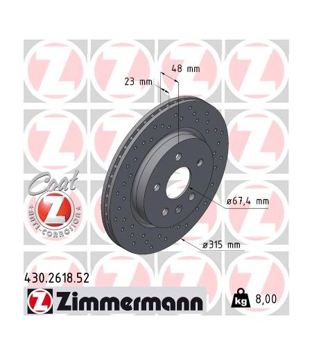 Zimmermann Bremsscheibe Sport Coat Z Hinten Rechts Links Gelocht 315mm Für Cadillac General Motors Opel Chevrolet 13501303 13501314 569062 430.2618.52