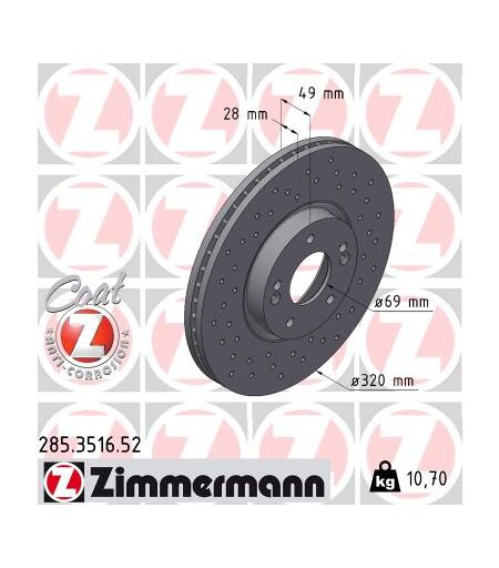 Zimmermann Bremsscheibe Sport Coat Z Vorne Rechts Links Gelocht 320mm Für Hyundai Kia 51712-2b700 51712-2p700 517122p700 285.3516.52