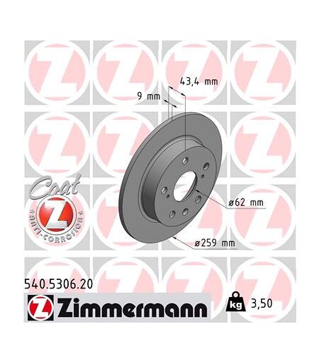 Zimmermann Bremsscheibe Coat Z Hinten Rechts Links Voll 259mm Für Suzuki 55611-61m21-000 55611-70l00 55611-61m00 540.5306.20