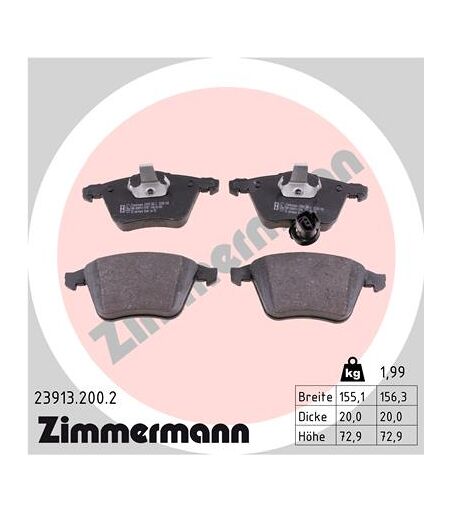 Zimmermann Bremsbelagsatz, Scheibenbremse Vorne Rechts Links Foto Entspricht Lieferumfang Für Vw Audi Vag 8j0698151f 8p0698151 8j0698151a 23913.200.2