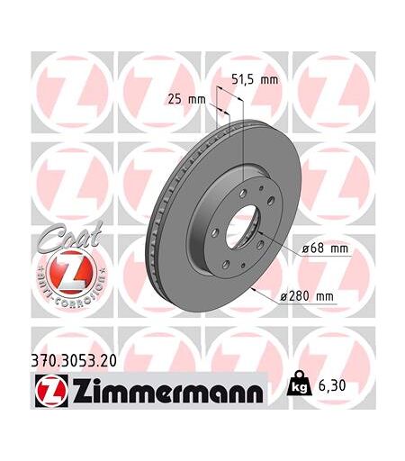 Zimmermann Bremsscheibe Coat Z Vorne Rechts Links Innenbelüftet 280mm Für Mazda (Changan) B45a-33-251a Bkc3-33-251 Bjs7-33-251a 370.3053.20