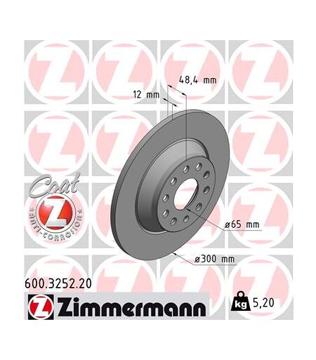 Zimmermann Bremsscheibe Coat Z Hinten Rechts Links Voll 300mm Für Skoda (Svw) Vw (Faw) Mg Audi Vag 3qd615601 10464822 3q0615601a 600.3252.20