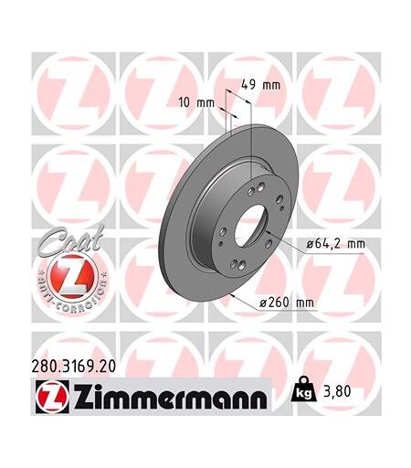 Zimmermann Bremsscheibe Coat Z Hinten Rechts Links Voll 260mm Für Honda 42510-Sea-E50 42510-Sea-E00 280.3169.20
