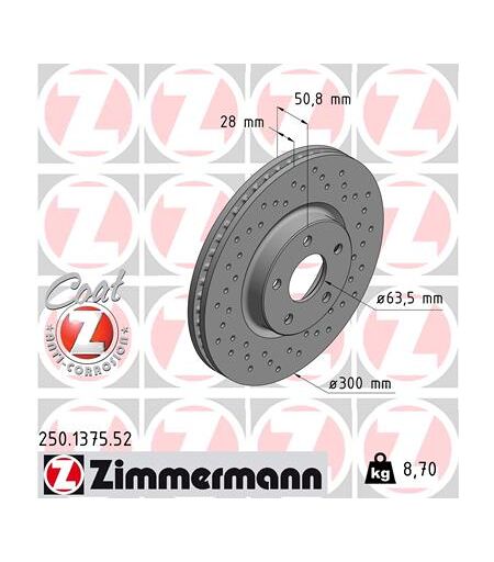 Zimmermann Bremsscheibe Sport Coat Z Vorne Rechts Links Gelocht 300mm Für Ford Dg9c-1125-Ad Dg9c-1125-Ac Dg9c-1125-Af 250.1375.52