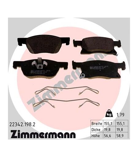 Zimmermann Bremsbelagsatz, Scheibenbremse Vorne Rechts Links Mit Feder Für Opel 95526566 13478300 39103797 22342.198.2