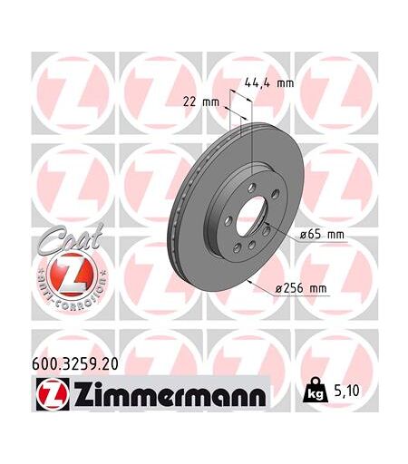 Zimmermann Bremsscheibe Coat Z Vorne Rechts Links Innenbelüftet 256mm Für Vag 2q0615301g 600.3259.20
