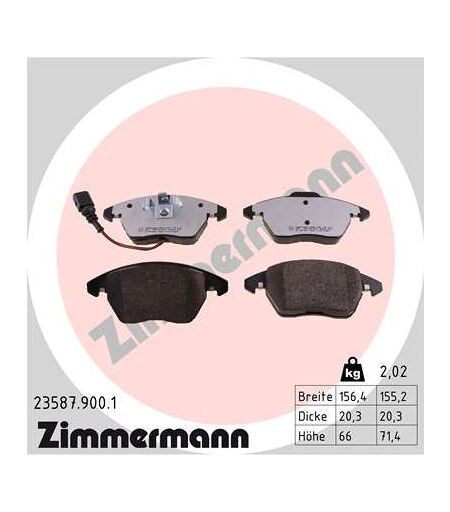 ZIMMERMANN Bremsbelagsatz, Scheibenbremse rd:z Anzahl Verschleißanzeiger [pro Achse]: 1: pro Achse Höhe 1: 66 mm Verschleißwarnkontakt: inkl. Verschleißwarnkontakt Höhe 2: 71 mm Breite 2: 155 mm Breite 1: 156 mm Dicke/Stärke: 20 mm braking_system_608: Bremsanlage: staubreduzierte Bremsbeläge test_mark_190: Prüfzeichen: ECE R90 APPROVED Bremssystem: ATE Ergänzungsartikel/Ergänzende Info: Foto entspricht Lieferumfang: Menge 1 entspricht einem Satz (4 Bremsbeläge für links UND rechts) , OE-Nummer:ATE:607184A.B.S.:37414fri.tech.:564.0BREMBO:P 85 075XTRW:GDB1550JURID:573128JCZIMMERMANN:23587.200.1DELPHI:LP1837ATE:13.0460-7184.2JURID:573197JTEXTAR:2469682VALEO:598635BOSCH:0 986 424 797FEBI BILSTEIN:16502BARUM:BA2195ATE:13.0470-7184.2JURID:573128JJURID:573197JCATE:LD7184ICER:181567TEXTAR:2358701HELLA PAGID:8DB 355 010-581REMSA:1030.01TEXTAR:2469602FERODO:FDB1641TRW:GDB1550DTEBREMBO:P 85 075TEXTAR:2358781 ...