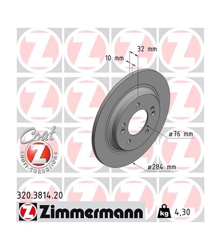 Zimmermann Bremsscheibe Coat Z Hinten Rechts Links Voll 284mm Für Hyundai Kia (Dyk) (Beijing) 58411-L1000 58411-3v500 584113v500 320.3814.20