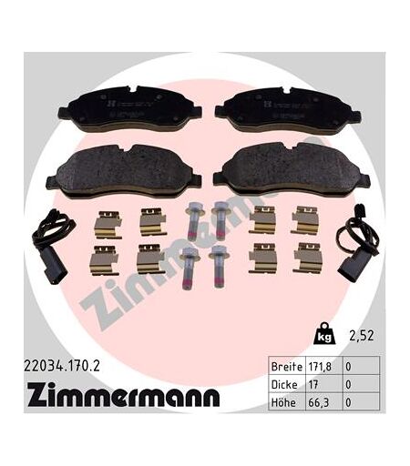 ZIMMERMANN Bremsbelagsatz, Scheibenbremse Höhe [mm]:66 mm Ergänzungsartikel/Ergänzende Info 2:mit Schrauben Verschleißwarnkontakt:inkl. Verschleißwarnkontakt Bremssystem:BOSCH Ergänzungsartikel/Ergänzende Info:mit Gleitblech Dicke/Stärke [mm]:17 mm Prüfzeichen:ECE R90 APPROVED Ergänzungsartikel/Ergänzende Info:Foto entspricht Lieferumfang Breite [mm]:171 mm Anzahl Verschleißanzeiger [pro Achse]:2 pro Achse WVA-Nummer:22034Menge 1 entspricht einem Satz (4 Bremsbeläge für links UND rechts) , u.a. für Ford Transit V363 (FAD, FBD), 2198 cm³, 125 PS (92 kW), ab 8/2013, KBA-Nr: 8566BHKFord Transit V363 (FAD, FBD), 2198 cm³, 155 PS (114 kW), ab 8/2013, KBA-Nr: 8566BHLFord Transit V363 (FCD, FDD), 2198 cm³, 155 PS (114 kW), 8/2013 bis 3/2016, KBA-Nr: 8566BHOFord Transit V363 (FCD, FDD), 2198 cm³, 155 PS (114 kW), 8/2015 bis 3/2016, KBA-Nr: 8566BHPFord Transit V363 (FCD, FDD), 2198 cm³, 125 PS (92 kW), 8/2013 bis 3/2016, KBA-Nr: 8566BHQFord Transit V363 (FCD, FDD), 2198 cm³, 125 PS (92 kW), 8/2013 bis 3/2016, KBA-Nr: 8566BHRFord Transit V363 (FCD, FDD), 2198 cm³, 100 PS (74 kW), 8/2013 bis 3/2016, KBA-Nr: 8566BHSFord Transit V363 (FED, FFD), 2198 cm³, 100 PS (74 kW), 8/2013 bis 3/2016, KBA-Nr: 8566BIHFord Transit V363 (FED, FFD), 2198 cm³, 100 PS (74 kW), 8/2013 bis 3/2016, KBA-Nr: 8566BICFord Transit V363 (FED, FFD), 2198 cm³, 125 PS (92 kW), 8/2013 bis 3/2016, KBA-Nr: 8566BIFFord Transit V363 (FED, FFD), 2198 cm³, 125 PS (92 kW), 8/2013 bis 3/2016, KBA-Nr: 8566BIBFord Transit V363 (FED, FFD), 2198 cm³, 125 PS (92 kW), 8/2013 bis 3/2016, KBA-Nr: 8566BIGFord Transit V363 (FED, FFD), 2198 cm³, 155 PS (114 kW), 8/2013 bis 3/2016, KBA-Nr: 8566BIDFord Transit V363 (FED, FFD), 2198 cm³, 155 PS (114 kW), 8/2013 bis 3/2016, KBA-Nr: 8566BIAFord Transit V363 (FED, FFD), 2198 cm³, 155 PS (114 kW), 8/2013 bis 3/2016, KBA-Nr: 8566BIEFord Transit V363 (FAD, FBD), 2198 cm³, 100 PS (74 kW), 8/2013 bis 3/2016, KBA-Nr: 8566BHJFord Transit V363 (FAD, FBD), 2198 cm³, 125 PS (92 kW), 8/2013 bis 3/2016, KBA-Nr: 8566BHKFord Transit V363 (FAD, FBD), 2198 cm³, 125 PS (92 kW), 8/2013 bis 3/2016, KBA-Nr: 8566BJGFord Transit V363 (FED, FFD), 2198 cm³, 135 PS (99 kW), 8/2013 bis 3/2016Ford Transit V363 (FAD, FBD), 2198 cm³, 155 PS (114 kW), 12/2014 bis 3/2016, KBA-Nr: 8566BHLFord Transit V363 (FCD, FDD), 1995 cm³, 130 PS (96 kW), ab 3/2016, KBA-Nr: 8566BNGFord Transit V363 (FCD, FDD), 1995 cm³, 105 PS (77 kW), ab 3/2016, KBA-Nr: 8566BNFFord Transit V363 (FCD, FDD), 1995 cm³, 170 PS (125 kW), ab 3/2016, KBA-Nr: 8566BNIFord Transit V363 (FED, FFD), 1995 cm³, 105 PS (77 kW), ab 3/2016, KBA-Nr: 8566BNAFord Transit V363 (FED, FFD), 1995 cm³, 130 PS (96 kW), ab 3/2016, KBA-Nr: 8566BNBFord Transit V363 (FED, FFD), 1995 cm³, 170 PS (125 kW), ab 3/2016, KBA-Nr: 8566BNDFord Transit V363 (FED, FFD), 1995 cm³, 170 PS (125 kW), ab 3/2016, KBA-Nr: 8566BNUFord Transit V363 (FAD, FBD), 1995 cm³, 105 PS (77 kW), ab 3/2016, KBA-Nr: 8566BNPFord Transit V363 (FAD, FBD), 1995 cm³, 130 PS (96 kW), ab 3... ...