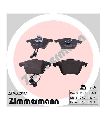 Zimmermann Bremsbelagsatz, Scheibenbremse Vorne Rechts Links Foto Entspricht Lieferumfang Für Audi (Faw) Vag 4f0698151d 8e0698151l 4e0698151f 23763.20