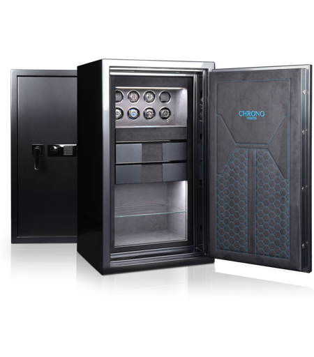 Nicht zufällig stand eine legendäre Rennstrecke Pate für den Daytona von Chronovision. Das Design dieses Tresors ist einfach atemberaubend. In einem aufwendigen Verfahren wird der Tresor geschliffen, grundiert, mehrlagig lackiert und für das Finish poliert. Der Innenraum wird mit hochwertigem, feinem Samtvelours ausgekleidet.... ...