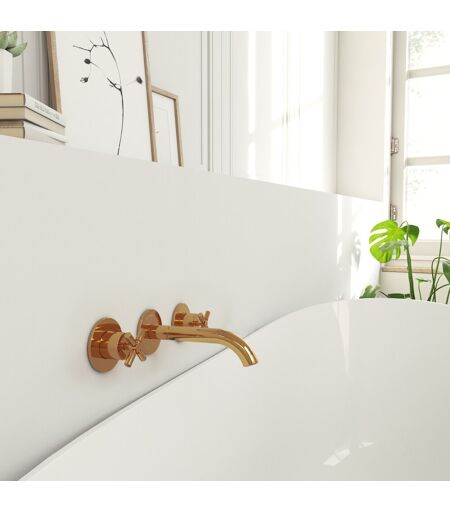 " Zur Unterputzmontage - Technische Komponenten und Anschlüsse sind für ein stylisches Ambiente in der Wand versteckt. Klassische Zweigriff-Armatur mit 90° Warm- und Kaltwasserventilen für eine dauerhaft leichtgängige Bedienung der Armatur. Dank des schlichtem runden Designs fügt sich das Produkt in jedes Design ein. Armatur ohne Ablaufgarnitur für ein durchgängiges Design. Passende Schaftventile finden Sie im Bereich Zubehör. Diese Badarmatur verfügt über einen starren Auslauf. Die Armatur ist mit einem klassischen Einbaukörper 1/2″ ausgestattet und einbaufertig. Der Luftsprudler sorgt bei dieser Armatur für einen vollen und weichen Wasserstrahl. Von den Armaturen über Brausegarnituren bis zu Accessoires: Auch für dieses Produkt wird massives Messing für eine hochwertige Haptik verwendet. Details: Produkt für Durchlauferhitzer ab 21 kwh geeignet. Ausladung: 195 mm mit 90° Keramikventilen inklusive Messing-Unterputzkörper ½"" Farbe: Rosegold" ...