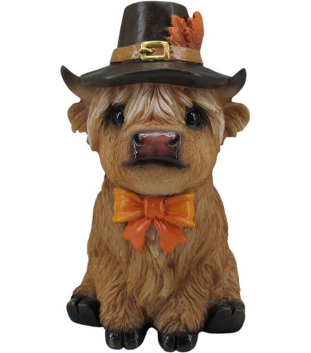 FD Dekofigur Kuh mit Herbsthut Highland Cattle Halloween 17 x 10 cm braun