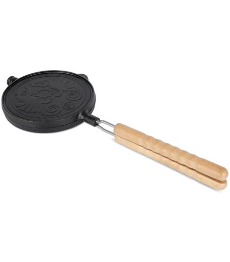Petromax Wende-Waffeleisen Produktnummer: 0691404256 Das Wende-Waffeleisen ist eine gusseiserne Form, mit der Sie sowohl herzhafte als auch süße Waffeln im Handumdrehen zubereiten können. Mit dem dazugehörigen Auflagegestell erhalten Sie eine passgenaue Grundlage, auf der Sie das Waffeleisen kippsicher und rutschfest auflegen können. Die Waffelgussform besteht aus zwei Teilen, die durch ein Scharnier miteinander verbunden sind. Vorgeformte Einkerbungen verschaffen der gusseisernen Form eine feste Position im Gestell. Durch den Verschlussmechanismus wird das Eisen zusammengehalten und bleibt auch während des Wendevorgangs sicher verschlossen: So fließt ihr Waffelteig nicht aus der Form. Mit Hilfe der naturbelassenen Holzgriffe können Sie das Wende-Waffeleisen auch bei höheren Temperaturen problemlos mit einem Handgriff drehen. Die an der Seite langgeführte Gussnase bildet den Wendeanschlagpunkt am Auflagegestell. Dadurch lässt sich das Eisen um 180° drehen und erreicht anschließend wieder den richtigen Auflagepunkt am Gestell. Mit dem Wende-Waffeleisen geht das Zubereiten frischer Herzwaffeln leicht von der Hand. Dabei müssen Sie auf den charakteristischen Geschmack, den traditionelles Kochen mit Gusseisen mit sich bringt, nicht verzichten. Wenn ein feuriges Drachen-Brandzeichen voll und ganz nach ihrem Geschmack ist, dann ist die drachenstarke Doppelfunktion vom Wendewaffeleisen genau das richtige für Sie. Denn wo innen luftige Waffeln backen, ist auf der Außenseite mit großformatigem Drachenlogo-Druck auch das Backen von dünnen Pfannkuchen oder Teigfladen mit einen drachenstarken Logo-Abdruck möglich. Platz da: Zum Wenden benötigt das Wende-Waffeleisen ausreichend Spielraum. Daher ist es wichtig, dass das Auflagegestell etwas erhöht positioniert wird und zur Mitte hin genügend Platz nach unten gegeben ist. Bestenfalls beträgt dieser mindestens den Durchmesser deines Waffeleisens. Das ist notwendig, damit Sie ihr Eisen frei bewegen können und das Wenden auch reibungslos vonstatten geht. Eine ideale Draußen-Kochstelle, um das Wende-Waffeleisen zum Einsatz zu bringen, ist der Atago: Das Gestell des Waffeleisens passt optimal auf den oberen Rand. Gleichzeitig ist die Distanz zwischen dem Auflagegestell und dem Kohlerost groß genug, um die Waffeln mit indirekter Hitze backen zu können. Dadurch erzielen Sie beste Ergebnisse und haben ausreichend Abstand für geschickte Wendemanöver. Material: Gusseisen, Edelstahl, Holz, Stahl Farbe: schwarz Maße Wende-Waffeleisen: Wende-Waffeleisen, Auflagegestell: 8,5 x 22 x 28 cm Gesamtmaße: 8,5 x 22 x 28 cm Gewicht: ca. 3,6 kg Waffelgröße: 16 cm Gussform mit Scharnier für Herzwaffeln: einfache Befüllung des Wende-Waffeleisens aus Gusseisen für perfekte Waffeln vom Grill oder Atago um 180° drehbar optimaler Abstand zum Feuer: Auflagegestell auf dem Kohlerost sorgt für Backen mit indirekter Hitze Herzform oder Drachen-Brandzeichen: innen herzhafte oder süße Waffeln und auf der Außenseite dünne Pfannkuchen oder... ...