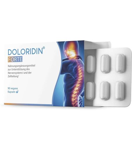 Anwendungsgebiet von Doloridin Forte Uridinmonophosphat KapselnZur gezielten Nahrungsergänzung mit Uridinmonophosphat, bioaktivem Folat und Vitamin B12 – ideal bei einseitiger Ernährung oder erhöhtem Bedarf an nervenbezogenen Mikronährstoffen.Wirkungsweise von Doloridin Forte Uridinmonophosphat KapselnVitamin B12 trägt zur normalen Funktion des Nervensystems bei1.Folat und Vitamin B12 leisten einen Beitrag zur normalen Zellteilung2.Die Kombination mit Uridinmonophosphat ergänzt die Formel sinnvoll im Rahmen einer ausgewogenen Nährstoffzufuhr.Wirkstoffe / Inhaltsstoffe / ZutatenZutaten von Doloridin Forte Uridinmonophosphat Kapseln:Pro Kapsel:– Uridinmonophosphat– 5-Methyltetrahydrofolat-Glucosaminsalz (aktive Folsäure)– Methylcobalamin (Vitamin B12)Zutaten: Mikrokristalline Cellulose, Natriumsalze von Uridinmonophosphat, Hydroxypropylmethylcellulose (Kapselhülle), Vitamin C, (6S)-5-Methyltetrahydrofolat-Glucosaminsalz, Methylcobalamin (Vitamin B12).GegenanzeigenBei bekannter Überempfindlichkeit gegenüber einen der oben genannten Inhaltsstoffe sollte dieses Produkt nicht angewendet werden.DosierungVerzehrempfehlung von Doloridin Forte Uridinmonophosphat Kapseln:Täglich 1 Kapsel unzerkaut mit ausreichend Wasser einnehmen.Für eine optimale Versorgung wird eine längerfristige und regelmäßige Einnahme empfohlen.Hinweise1 Vitamin B12 trägt zur normalen Funktion des Nervensystems bei.2 Folat und Vitamin B12 haben eine Funktion bei der Zellteilung.Angaben gemäß Verordnung (EU) Nr. 432/2012 über nährwert- und gesundheitsbezogene Angaben.Nahrungsergänzungsmittel stellen keinen Ersatz für eine abwechslungsreiche Ernährung dar. Eine ausgewogene Ernährung und gesunde Lebensweise sind wichtig. Die empfohlene tägliche Verzehrmenge sollte nicht überschritten werden. Außerhalb der Reichweite von kleinen Kindern aufbewahren. Kühl und trocken lagern. Auch für eine langfristige Anwendung geeignet. Doloridin Forte Uridinmonophosphat Kapseln könn ...