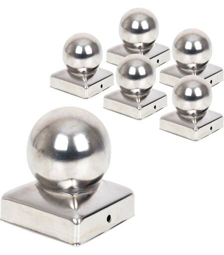 5x VOSS.garden Pfostenkappe 70 x 70mm mit Kugel, Edelstahl Schutzkappe, inkl. Schrauben