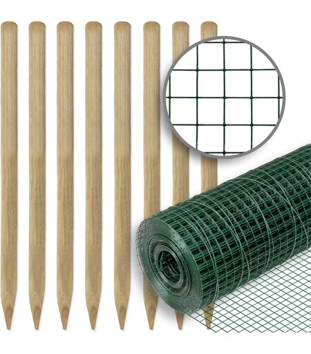 VOSS.farming Zaunset, Gartenzaun-SET: Volierendraht 10mx100cm, grün + 8x Holzpfähle