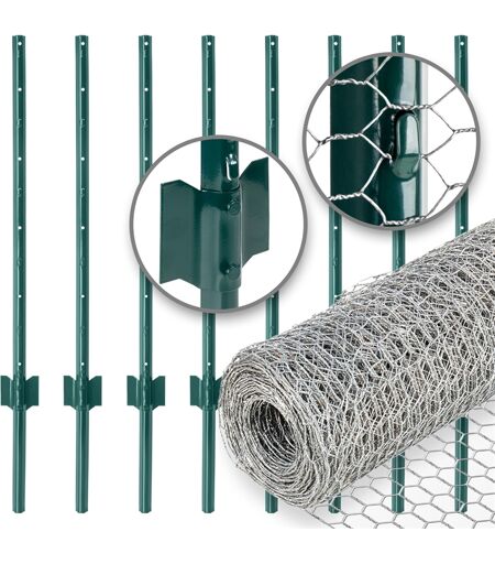 VOSS.farming Gartenzaun-SET: Sechseckgeflecht 10mx75cm + 8x Metall Zaunpfosten
