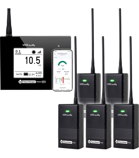 VOSS.farming Weidzaun-Überwachung per Smartphone - Set für 5 Zäune: FM 20 WiFi + 5x Sensor