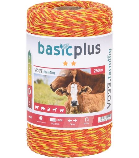 VOSS.farming Weidezaun Litze 250m, 3x0,16 Niro, gelb-orange 2*
