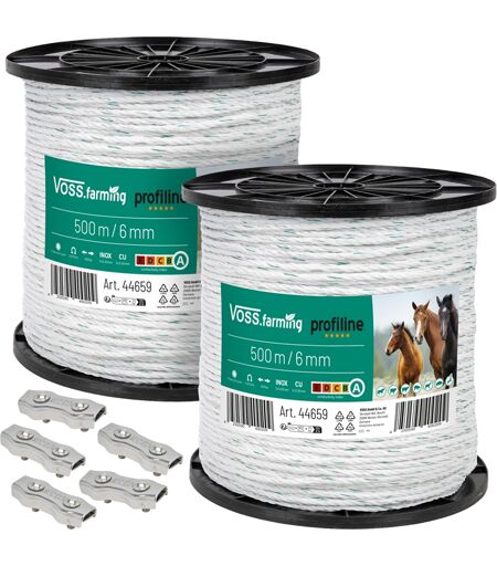 VOSS.farming 2x Weidezaunseil 500m 6mm, 3x 0,3 Cu+0,3 Niro, inkl. Verbinder