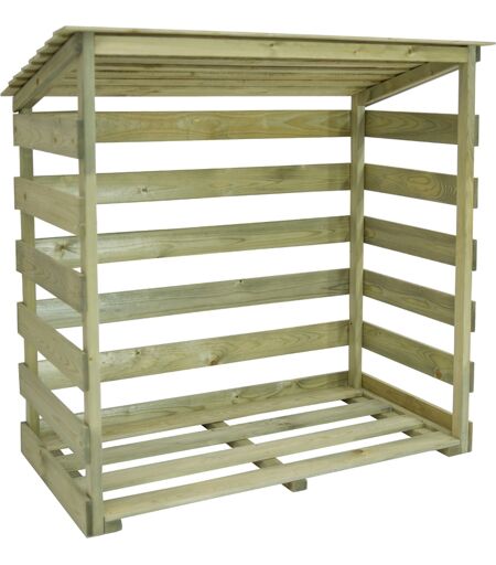 VOSS.garden Brennholzregal Kaminholzregal 119x64x118cm Kiefer GrünPlatzsparende und robuste Lösung für die BrennholzaufbewahrungDas Brennholzregal aus Kiefer bietet eine praktische Lösung für die Brennholzaufbewahrung im Garten. Mit den Maßen 119x64x118/103cm (geneigtes Dach) passt es auch in kleinere Gärten und bietet Stauraum für Ihr Brennholz.Das Regal ist mit einem Lattenboden und einer Lamellenrückwand ausgestattet, die für eine gute Luftzirkulation sorgen, damit das Holz trocken bleibt. Die Kiefernholzelemente sind mit einer imprägnierten Oberfläche versehen, die zusätzlichen Schutz vor Feuchtigkeit und Wettereinflüssen bietet.Das feste Dach schützt das gelagerte Holz vor Regen und Feuchtigkeit. Die offene Vorderseite und die Seiten ermöglichen eine optimale Belüftung des Brennholzes. Mit einem Gewicht von 26kg ist das Regal stabil und standfest.Details:• Maße: 119x64x118/103cm• Material: Kiefer• Farbe: Grün• Gewicht: 26kg• Lattenboden für gute Belüftung• Lamellenrückwand• Festes Dach zum Schutz vor Witterung• Gegen Fäulnis und Verrottung behandelt• Offene Vorder- und SeitenbereicheLieferumfang:• 1x Brennholzregal Kiefer braun ...