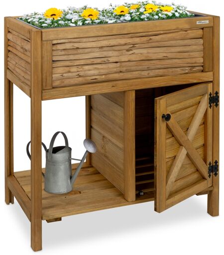 VOSS.garden Hochbeet JUA 85x46x94cm MassivholzRustikale Seitenwände mit Einlagen aus Haselnusszweigen, Ablage und StauraumDas Hochbeet JUA von VOSS.garden ist mehr als ein einfacher Pflanzkasten: Gefertigt aus Naturmaterialien, verbindet es ansprechendes Design mit funktionaler Handwerkskunst. Geeignet für alle, die auf kleinem Raum stilvoll gärtnern und gleichzeitig Ordnung im Gartenzubehör schaffen möchten.Gefertigt aus braun lasiertem Massivholz und veredelt mit einer dekorativen Seitenfüllung aus natürlichen Haselnusszweigen, hebt sich dieses Hochbeet sichtbar von der Masse ab. Die rustikale Haselrutenverkleidung verleiht jedem Stück einen individuellen Charakter.Die großzügige Pflanzfläche eignet sich für Kräuter, kleinwüchsiges Gemüse oder Blumen und schafft ein natürliches Ambiente auf Balkon, Terrasse oder im Garten. Das integrierte Ablagefach sowie ein geschlossenes Schrankelement bieten praktischen Stauraum für Gartengeräte, Erde oder Pflanzzubehör - alles ordentlich und griffbereit verstaut.Dank der ergonomischen Höhe ist rückenschonendes Arbeiten im Stehen möglich - geeignet für passionierte Hobbygärtner. Jedes Hochbeet wird in Handarbeit gefertigt, wodurch individuelle Maserungen, Farbnuancen und Details entstehen.Details:• Maße: 85x46x94cm• Material: Massivholz Kiefer mit Haselnuss-Seitenwänden• Gewicht: 20kg• Oberflächenbehandlung: braune Lasur auf Wasserbasis• Rustikale Seitenwände mit Haselnusszweigen• Ablagefach und Schrankelement• Handgefertigt• WetterbeständigLieferumfang:1x VOSS.garden Hochbeet JUA Holz 85x46x94cm, Massivholz, rustikale Seitenwände mit Einlagen aus Haselnusszweigen, Ablage und Stauraum ...