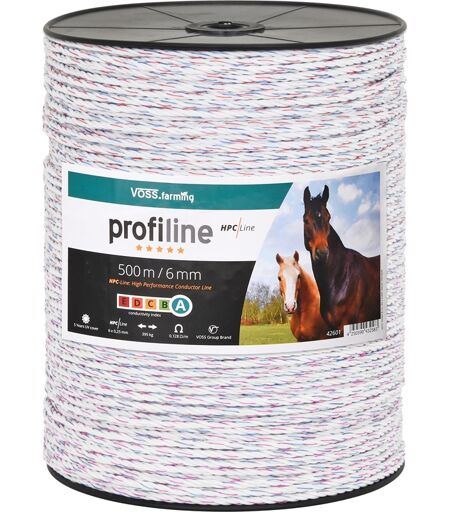 VOSS.farming Weidezaunseil 500m, Ø 6mm, 6x0,25 HPC® Powerleiter, XL-Rolle, Pferdezaun, weiß