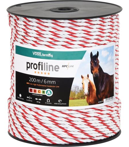 VOSS.farming Weideseil 200m, Ø 6mm, 6x0,25 HPC® Powerleiter, Markenqualität, weiß-rot