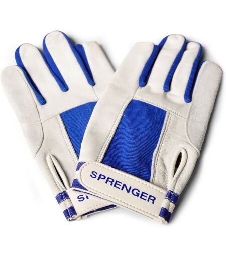 1 Paar Originale Sprenger Roadie Handschuhe Aus hochwertigen Leder, Daumen und Zeigefinger frei, Optimal für Trussing / Rigging, Ausgezeichnete Passform, Hoher Tragekomfort, Farbe: Grau / Blau, Größe: M (andere Größen finden Sie in unseren Online-Shop!) ...