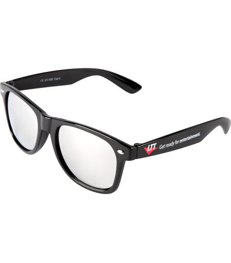 LTT Sonnenbrille: Die Sonnenbrille entspricht den Anforderungen der europäischen Richtline 89/686/EWG und der harmonisierten Norm EN ISO 12312-1:2013. Material: Kunststoff, Farbe: schwarzer Rahmen, mit verspiegelten Gläsern in Silber, Größe: ca. 15 x 5x 15cm im aufgeklappten Zustand, UV-Schutz: UV-400, Filterkategorie 4, Modell-Form: Wayfarer-Style, Aufdruck: LTT Logo auf dem linken Bügel ...