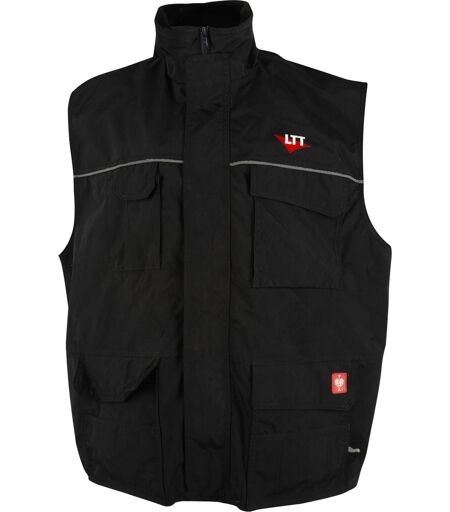 LTT Herren Weste: wasserabweisendes Obermaterial, mit Steppweste zum auszippen, 2 Brusttaschen, 2 Schub-/Balgtaschen, verlängerter Rücken, verdeckter Frontreißverschluss mit Wetterschutzleiste und Klettverschluss, Fleece-Kragen, Weste ist bei 30° C waschbar, Farbe: schwarz, Druck: LTT Logo vorne und hinten. ...