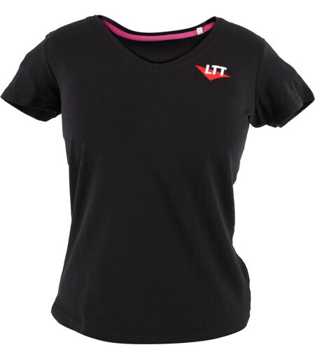 LTT Damen T-Shirt: Klassisches T-Shirt in schwarz, mit V-Ausschnitt und pinken Nackenband.gekämmte, ringgesponnene Baumwolle (95%), verstärkte Schulternaht, Body Fit ...