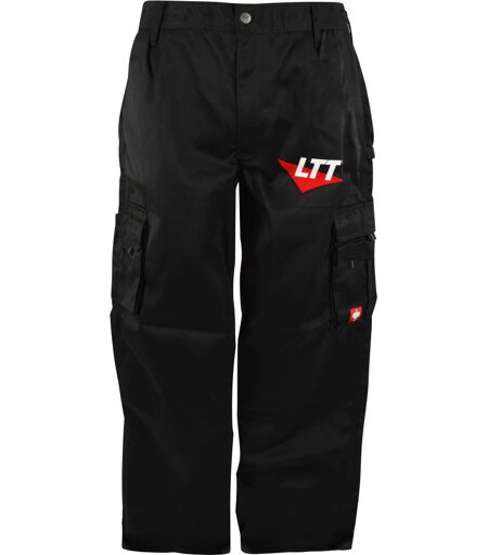 LTT Herrenhose lang: dehnbarer Bund, verstärkte Kniepolstertaschen, 2 Schubtaschen und Münztasche, 2 große Gesäßtaschen, eine mit Patte und Klettverschluss, Schenkeltasche, Werkzeugfächer und aufgesetztes Handyfach mit Patte und Klettverschluss, doppelte Zollstocktasche rechts mit Stiftefächern, Hammerschlaufe und Zollstocktasche links, Gürtelschlaufen und YKK-Reißverschluss, Material: 65 % Polyester / 35 % Baumwolle, Farbe: schwarz ...