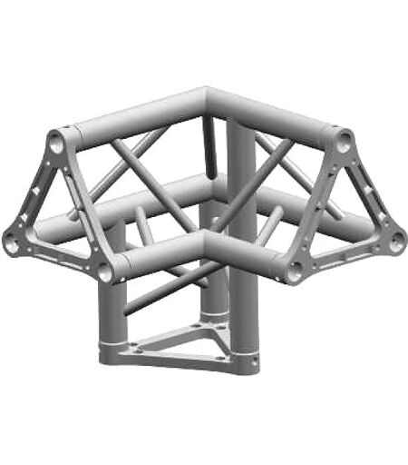 This is the most popular version of all our triangular trusses. It is manufactured using 6082 aluminium alloy extruded components, with a high load-bearing capacity and twist-resistant strength. The diagonal chords have been re-configured and their diameter changed to improve the aesthetic appearance and increase the overall strength of the truss. Features: Triangular section aluminium truss with 29cm long sides, Main Tubes: Extruded tube Ø 50 x 2 mm 6082 T6, Crosswise Tube: Extruded tube Ø 18 x 2 mm 6082 T6, Joint: Cast SG AlSi 12 aluminium plate, Dimensions: 50x50x50 cm, Connection systems: TXFC: quick-fit kit, TXSM10: bolt connection kit, Attention: For each truss you ordered you have to choose and order a connection kit separately., Description: The popular end plate system has a new design, produced from a new aluminium alloy that is heat treated to ensure even greater strength and provide a bright polished appearance. The diagonal chords have been re-configured and their diameter changed to improve the aesthetic appearance and increase the overall strength of the truss. The new “S” series trusses still employ the same dual connection systems of bolt kits or Fast connection kits as the existing range, to ensure full compability between the lines. The two systems maybe used as alternatives to each other, but if the structures are to be used near their limits, we recommend using the quick-fit-system. The bolt connection has lower loading capacity than shown in our reference tables. The possibility to choose between two different connection systems is more important than it may seem. The quick-fit system is certainly the most widespread and mainly used when the structure is frequently assembled and dismantled. In the case of permanent installations, on the other hand, a more economical bolt connection system may be used. Our plate is made in such a way that the bolts may be completely inserted so that there are no edges or external protuberances which could damage canvases or other fabrics. Futhermore, the posibility of using readily available bolts may be an advantage if there is a temporary lack of quick-fits kits due to oversight or loss. ...