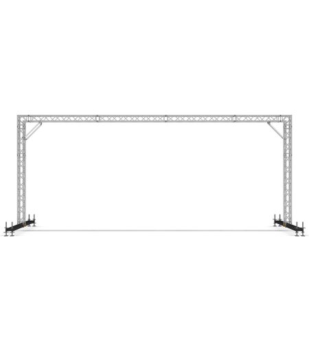 Mobile Kabelüberführungen von Naxpro Truss sorgen für die notwendige Sicherheit für wichtige Versorgungsleitungen über Straßen und Wegen. Mit unseren Aluminiumtraversensystemen lassen sich individuell nach Ihrer Anforderung schnell, einfach und unkompliziert Straßenüberquerungen, Kabelbrücken und viele weitere Möglichkeiten planen und errichten. Dieses System ist nur ein Beispiel, bei uns haben Sie die Auswahl aus mehr als 100 verschiedenen Standard Traversensystemen. Sollte dies nicht ausreichen so haben wir die Möglichkeit nach Ihren Vorgaben Sonderkonstruktionen in kürzester Zeit zu fertigen. Dieses Set besteht aus folgenden Einzelsystembauteilen: 5 Stk. Naxpro-Truss - HD34 - 300cm, 1 Stk. Naxpro-Truss - HD34 - 200cm, 2 Stk. Naxpro-Truss - HD34 - 125cm, 2 Stk. Naxpro-Truss - HD34 - C021, 4 Stk. Riggatec - Cornerbrake 1,0m, 2 Stk. Riggatec Ausleger für 29er Traversen - 300cm lang, 1 Stk. Statische Berechnung (Zweitnachweis), Technische Daten Kabelbrücke HD 34 – 12 m breit – 4,99 m hoch: Außenbreite: 12,10 m, Innenbreite: 11,42 m, Außenhöhe: 4,99 m, Innenhöhe: 4,70 m, Traversensystem: Naxpro Truss HD34, Vertikallast: Streckenlasten auf der horizontalen Traverse mit 30Kg/m möglich, Ballast: je Base 380Kg nach vorne und hinten gleichmäßig aufgeteilt (nicht im Set enthalten), Gesamtgewicht: ca. 410 kg, ' ...