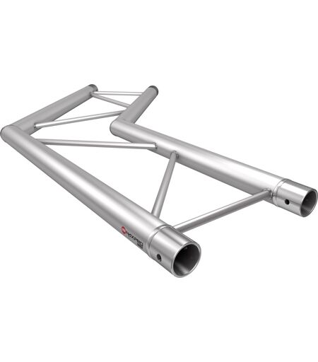 Naxpro FD 22 Traversensystem: Traversensystem in 2-Punkt Ausführung, welches trotz seines geringen Tragrohr-Durchmessers von nur 35 mm professionelle Verwendung im Messe- und Ladenbau, sowie in der Veranstaltungstechnik findet. Obwohl die Abmessungen sehr gering sind, lässt es genug Spielraum für Beleuchtungstechnik und Werbemittel. Das System wird mittels konischer Verbindung kraftschlüssig verbunden. Die Verbinder sind im Lieferumfang enthalten. Um die Traversen zu verbinden, benötigt man als Werkzeug lediglich einen leichten Aluminium-Hammer. Sonderkonstruktionen und Pulverbeschichtungen sind in kurzer Zeit realisierbar. Technische Daten: Kantenmaß 220 mm, Gurtrohr 35x2 mm, Diagonale 10x2 mm, inkl. Koniverbinder mit Bolzen und Splint (2x Konus, 4x Bolzen, 4x Splint), Legierung EN AW 6060 T66, Gewicht: 1,50 kg, Abmessungen: 50 x 50 x 3,5 cm (LxBxH), Winkel: 135° ...
