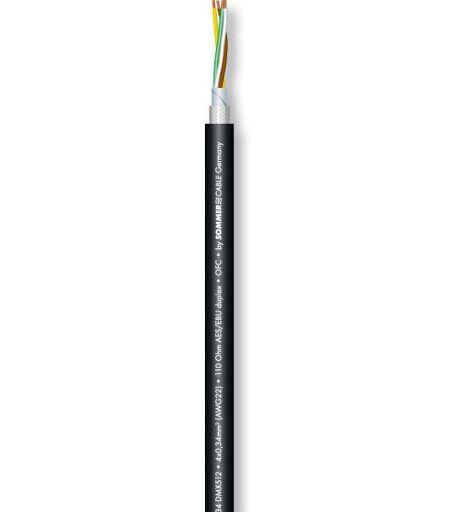 Einmal hin und einmal her...rundherum, das ist nicht schwer. Wenn Daten hin und her gehen müssen, dann sollte ein digitales Kabel mit einem Rückmeldekanal verwendet werden. Der Wellenwiderstand ist auch bei diesem Kabel mit 110 Ohm vorgegeben. Von den 4 Adern sind 2 für die Rückmeldefunktion verantwortlich. Der robuste Außenmantel ist für die Außeninstallation und die Festverlegung geeignet.Farbcodierung nach DIN 47100.Durch die doppelte Schirmung (AL/PT-Folie + Cu-Geflecht) und der Aderncodierung entspricht es den allgemein gültigen Vorschriften (VDE 0812/VDE 0207).Die PE-Version ist halogenfrei und für Erdverlegung geeignet. Flexible PUR-Blend-Version für mobilen Außeneinsatz. DIE VORTEILE: Digitale Übertragung bei langen Übertragungswegen aufgrund des DMX und AES/EBU-Standards, Hervorragend geschützt gegen elektrische Einstreuung (Cu-Geflecht + AL/PT-Folie), Extrem robust durch die zähe Ummantelung, PE-Version: salzwasserbeständig und erdverlegbar, DIE ANWENDUNG: Vernetzung von Scannern und Lichtanlagen mit Rückmeldefunktion, Verbindung von digitalen Steuerungen und Geräten aller Art, PE-Version für Erdverlegung + salzwasserbeständig, PUR-Blend-Version für mobilen Außeneinsatz, TECHNISCHE DATEN: Aufbau [2(2LI2YS0,34mm2)(ST)]CY, Mantel, Durchmesser PVC 7,0 mm, AWG 22, Innenleiter 4 x 0,34 mm2, Cu-Litze per Ader 7 x 0,25 mm, Leiterisolation PE 1,7 mm, Abschirmung Cu-Kreuzgeflecht verzinnt + AL/PT-Folie, Bedeckung, opt. 100 %, Temperaturbereich min. -25 °C, Temperaturbereich max. 70 °C, Brandlast je m 0,22 kWh, Gewicht bei 1 m 65 g, Aufmachung, VPE 100 m Rolle, Farbe schwarz, ELEKTRISCHE DATEN: Kapazität Ader/Ader bei 1 m 65 pF, Kapazität Ader/Schirm bei 1 m 245 pF, Leiterwiderstand bei 1 km 53 Ohm, Schirmwiderstand bei 1 km 15 Ohm, Isolationswiderstand bei 1 km > 5 GOhm, Wellenwiderstand 110 Ohm, Übertragungsgeschwindigkeit nach EIA 485 Standard 256 Kbs ...